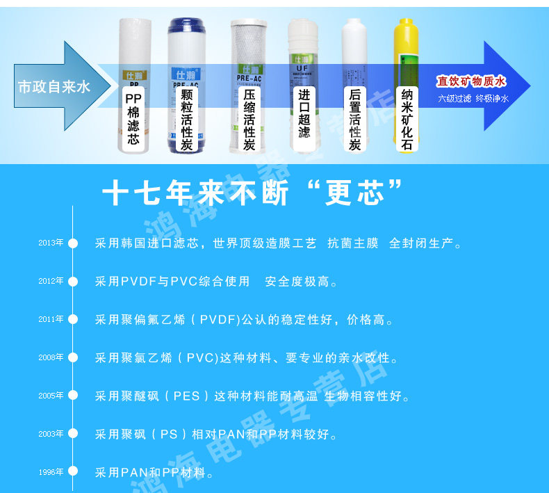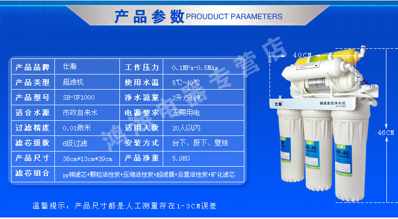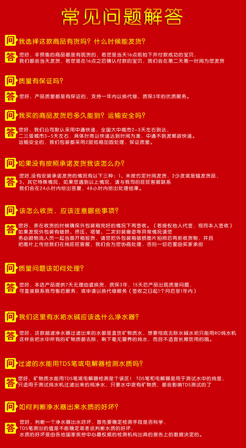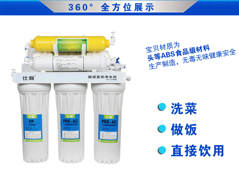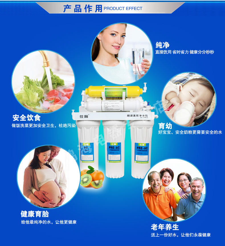 A: direct drinking water filtration and reach higher than the same models brand water purifier, 0.01 micron filtration to drink straight, please be assured that any bacteria were greater than 0.01 microns, rest assured straight drink orders before 17:00 the same day issued the same day, the default hair tact Express such as tact than the hair EMS express economy