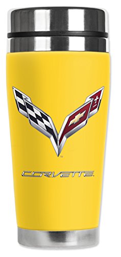 Mugzie GM-212-MAX "Corvette C7 Logo (Yellow)" Travel Mug with Insulated Wetsuit Cover, 20 oz, Black