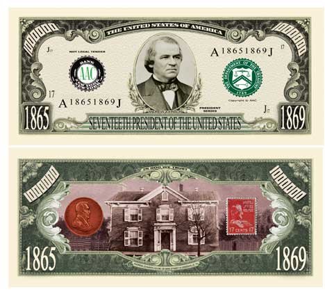 Product DescriptionSET OF 100 BILLS-ANDREW JOHNSON MILLION DOLLAR BILL0