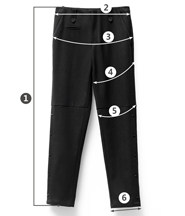 | 尺码 | ①裤长 | ②腰围 | ③臀围 | ④大腿围 | ⑤膝围 | ⑥脚围 | ⑦前裆 | ⑧后裆 | ||