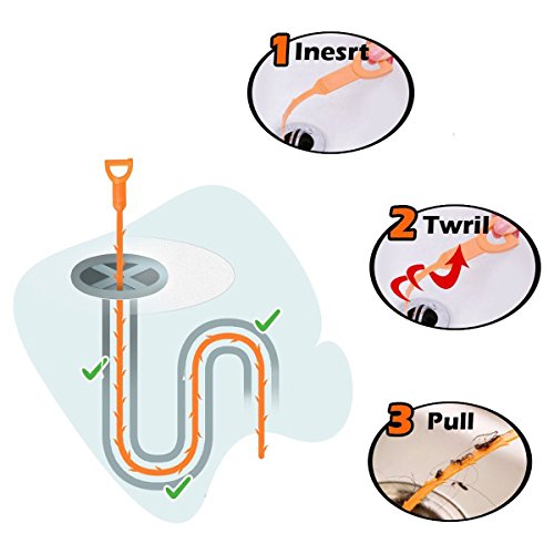 -. Feature : Reusable: Hard plastic with specially engineered barbs combined make the drain cleaning tool easy to use and reusable. / No Chemicals Required: Environmentally friendly alternative in clearing clogged and slow-running sink, shower and bath tub drains. / Effective: Skinny enough to go down the sink drain, easily grab and remove clustered hair, food, garbage, and other obstructions. / Package Included: 6 * 20-Inch drain snake
