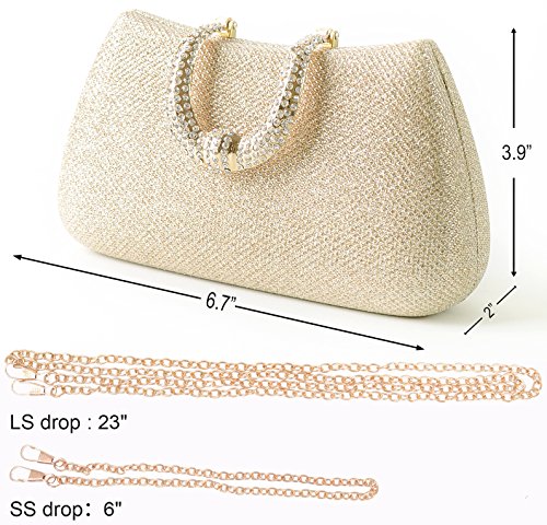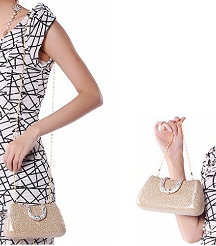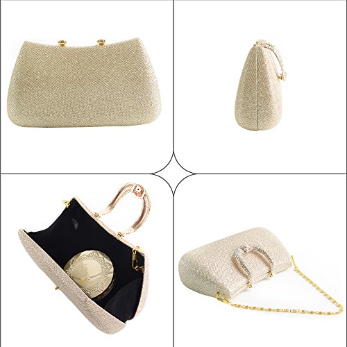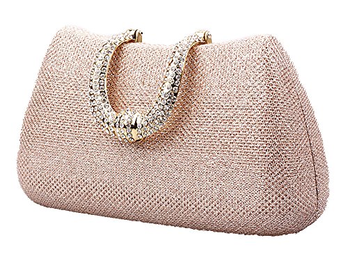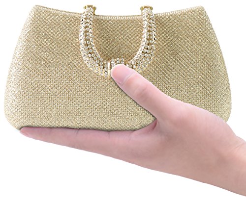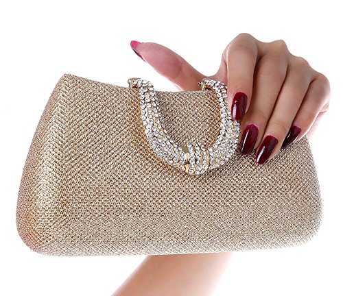 Womens Hard Handle Clutch for Wedding and Party- Pulama® Glitter Purse with Rhinestone Clasp