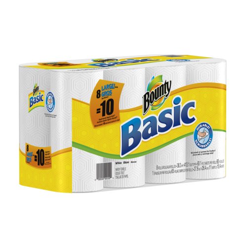 -. Title : Bounty Basic Paper Towels 8 Large Rolls Equal 10 Regular Rolls