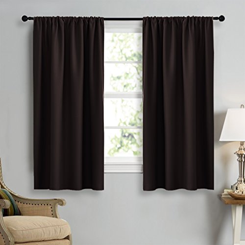 Blackout Curtain Panels 45" Long - NICETOWN Triple Weave Microfiber Noise Reducing Thermal Insulated Solid Rod Pocket Window Drapes / Draperies for Kids Room (One Pair,42 Inch by 45 Inch,Toffee Brown)