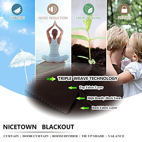 - ✅ AMAZING MATERIAL: This unique, soft and heavy-duty blackout fabric is woven with a three layer construction. The middle layer of black yarns create a curtain panel that is excellent for blocking out 85%-99% of light (Dark color works better on blocking light) while providing privacy.