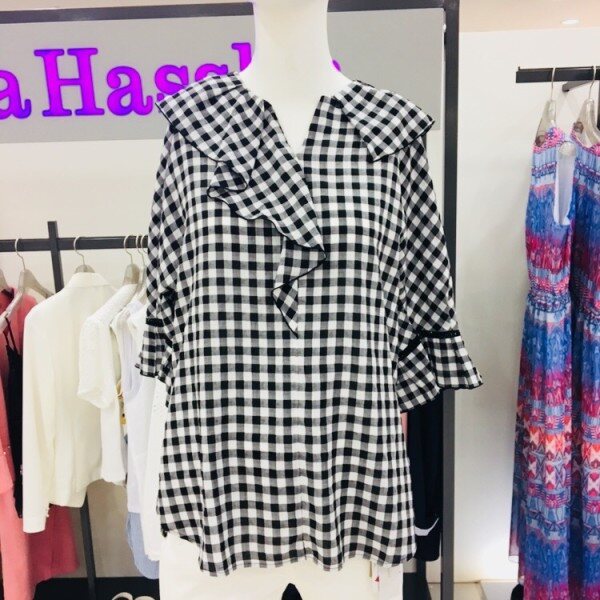 다양한 룩을 연출할 수 있는 체크블하우스바캉스, 나들이 아이템으로 추천넉넉한 핏으로 편안한착용감 선사흰바지, 네이비 슬랙스, 청바지 등으로 입어도 제격