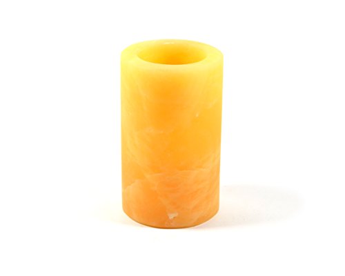 Creamy Orange Stone Candle Holder for Tea Candles, Real Hand Carved Calcite - Round Shaped, 4" tall - The Artisan Mined Series by hBAR