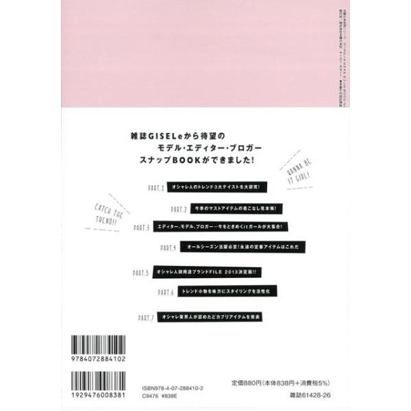 【商品基本情報】 商品名称:GISELe SNAP PULE BOOK 2013S/S 著者/出版社:/ 初版発行日:2013/05/10 サイズ:B5変判 ページ数:164 ISBN/JAN:9784072884102/4528189359192