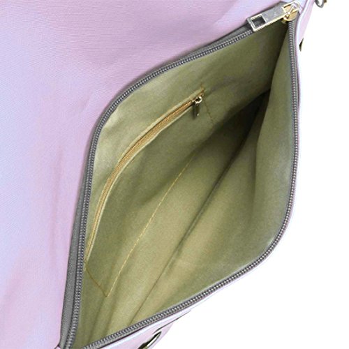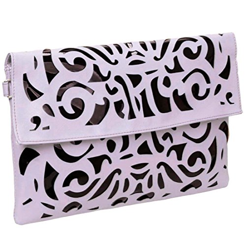 BMC Black Vinyl + Lilac Purple Faux Leather Decorative Cut Out Print Design Large Fashion Statement Envelope Clutch
