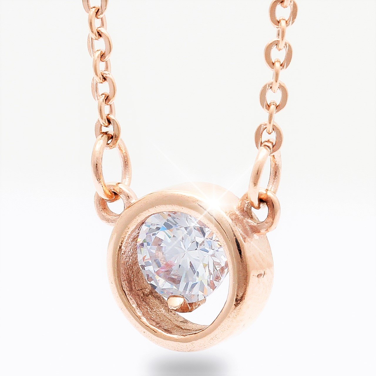 Designed with a large Swarovski zirconia on a circular pendant top.