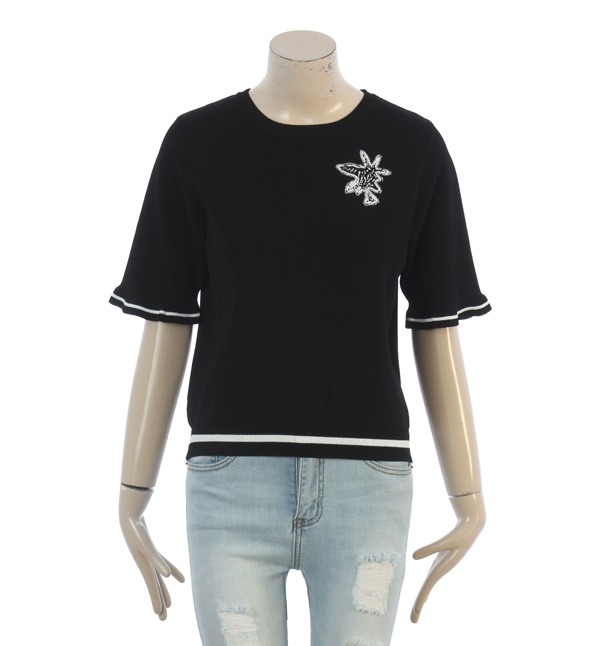 SATIN, 심플한 디자인에 큐빅장식으로 포인트를준 니트 티셔츠입니다