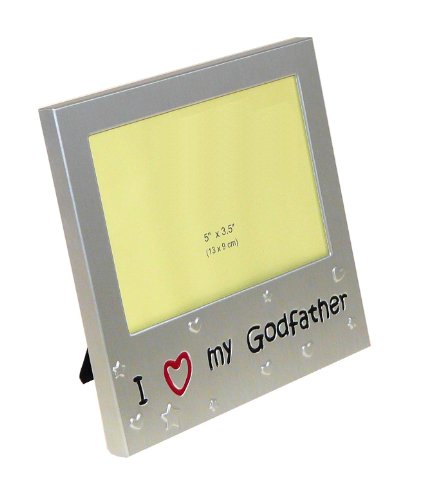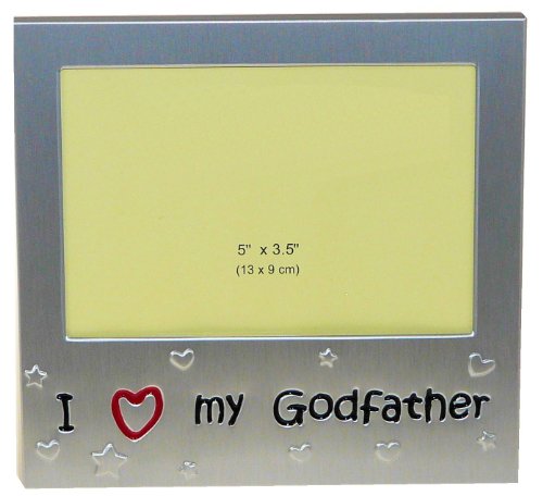 I Love My GodFather ' - Expressions Photo Picture Frame Gift - 5 x 3.5 " - Brushed Aluminum Satin Silver Color