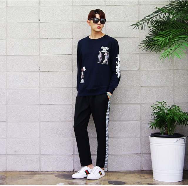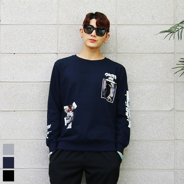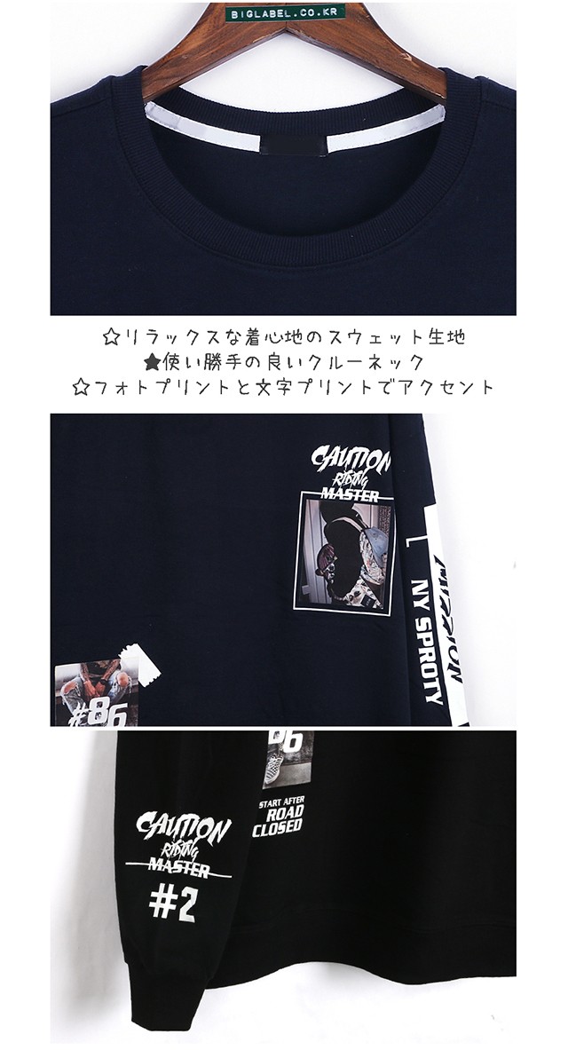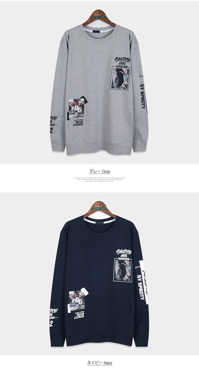 シックな印象のプリントスウェットトレーナーです。