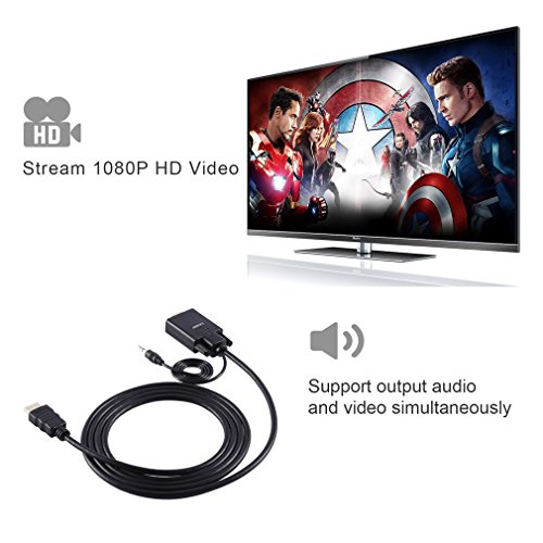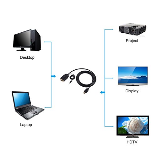 HDMI to VGA Adapter Cable LESHP HD 1080P HDMI to VGA Male to Male Audio Cable Adapter Converter 6 Feet/1.8 M with Gold Plated Active Video Adapter Cable Audio Cable for PC TV HD Monitor Laptop