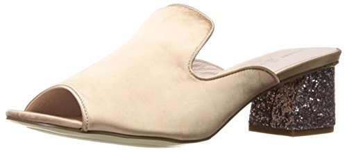 Product DescriptionSatin peep toe mule/slide with low block glitter heel0