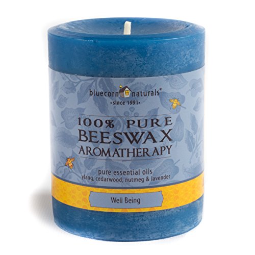 Bluecorn Beeswax 100% Pure Beeswax Aromatherapy Pillar Candles (3x4, Well Being: Ylang Ylang, Cedarwood, Nutmeg & Lavender.)