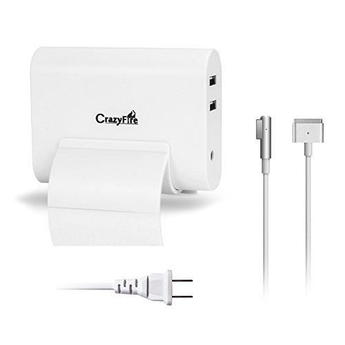 60W Magsafe Power Adapter for Macbook,CrazyFire Replacement Magsafe 2 Adapter AC Charger for MacBook Pro,Dual T-Tip and L-Tip Plug Design with 2 USB Port for Macbook 13" and Macbook Pro 13" 15" 17"