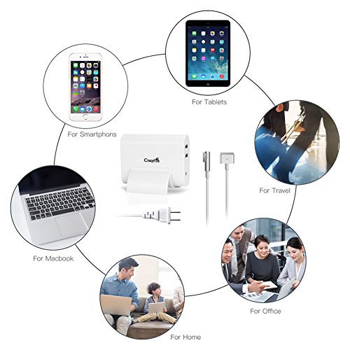 Extra Dual USB Design: It can not only charge MacBook laptop, but also can charge Iphone, Ipad, Andriod cellphones or tablet pc at the same time with the two extra USB charging ports.
