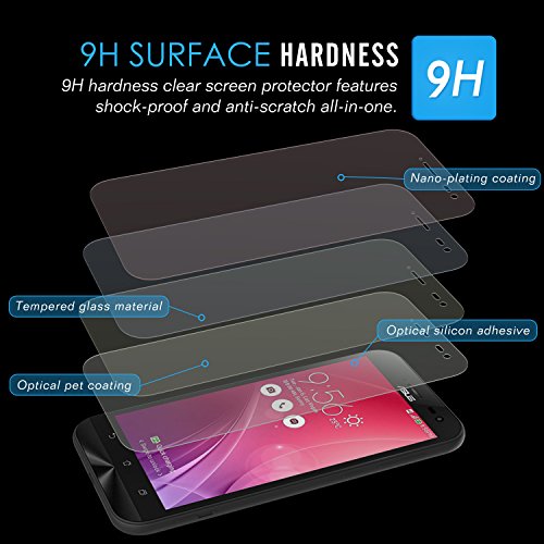 -. Feature : Premium Tempered Glass Screen Protector designed specifically for ASUS ZenFone Zoom 5.5 inch Smart Phone Edition for perfect protection on touch screen. (Only for Black ASUS ZenFone Zoom) / 9H hardness offers protection from scratch, crash, and shock, 0.33mm thickness helps maintain the original touch experience, 90% light penetration ratio preserves the original viewing quality. / Easy to clean Oleophobicity coating reduces fingerP.R.Ints and oily streaks. / Advanced fitting technology makes convenience for the fitting and removal. / No bubbles or residue.