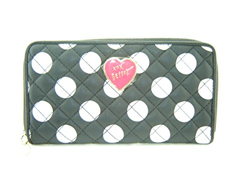 Betsey Johnson Zip Around Diamond Quilt Mod Dots Black/White