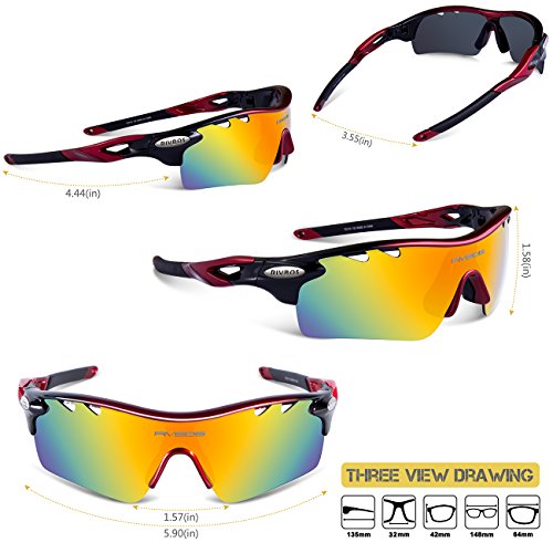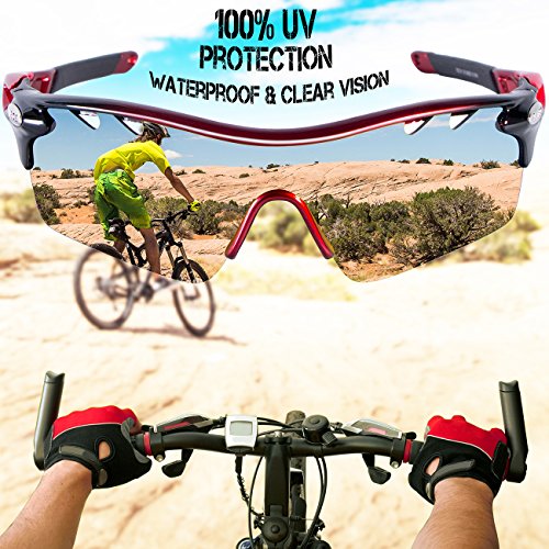 5つの互換性のあるレンズ - すべてのレンズは100%UV400保護コーティングで、100%有害なUVA&UVBレイをブロックします。真の色を復元し、反射光と散乱光を排除し、風景をよりクリアで柔らかくし、目を完全に保護します。主なものは多色レンズで、黄色のものは夜間のもの、青いものはビーチのもの、澄んだものは風の強いもの、黒のものは運転やその他の屋外活動のために偏光されています。