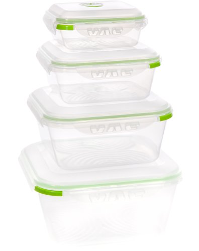 Ozeri INSTAVAC Green Earth Food Storage Container Set, BPA-Free 8-Piece Nesting Set with Vacuum Seal and Locking Lids