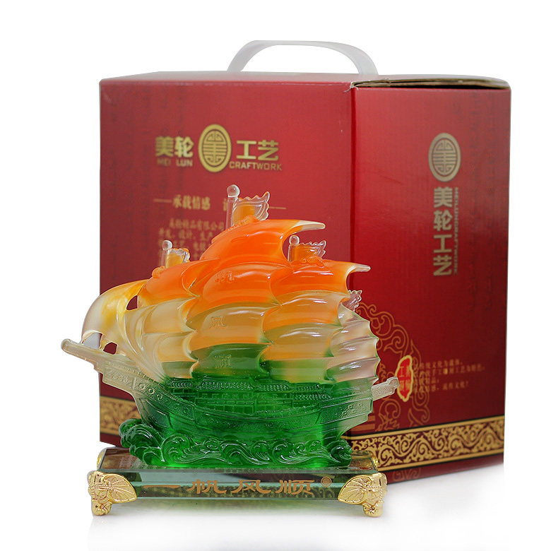 一帆风顺船客厅摆件招财金蟾工艺品马到成功马生肖风水牛酒柜摆件