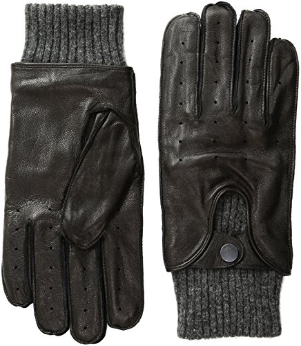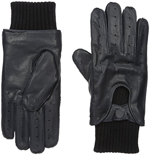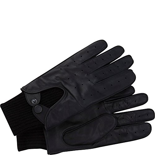 Product DescriptionLeather driving gloved with perforated dot pattern, snap wrist closure, elastic piecing on wrist, and heather rib knit trim0