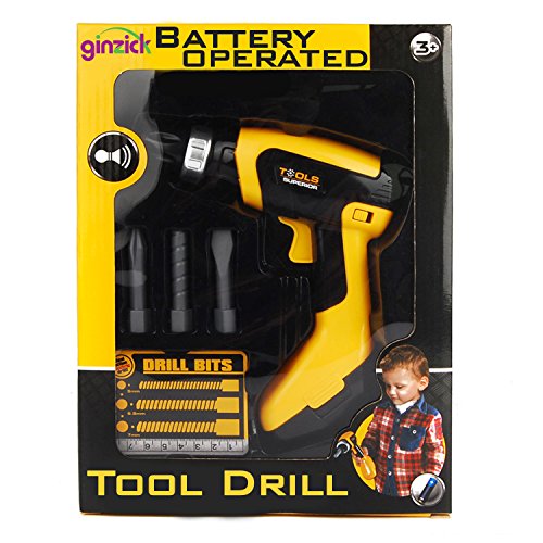 Ginzick Super Fun Kids Battery Operated Toy Drill is A kid-sized Battery Operated Toy Drill With make-believe fun Battery pack that will make kids feel like they're working on real construction projects Develops hand-eye coordination and helps to improve fine skills Perfect for little hands allowing your kids to have endless play time and fun and will give you and your kids hours and hours of play time and watch time. its a High Quality, Durable design makes a great addition to any play areaYou'll love to play and watch this Ginzick Battery Operated Toy Drill Enjoy And Have Fun!