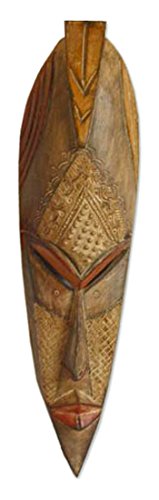 NOVICA Decorative Large Sese Wood Mask, Beige 'Well Done'