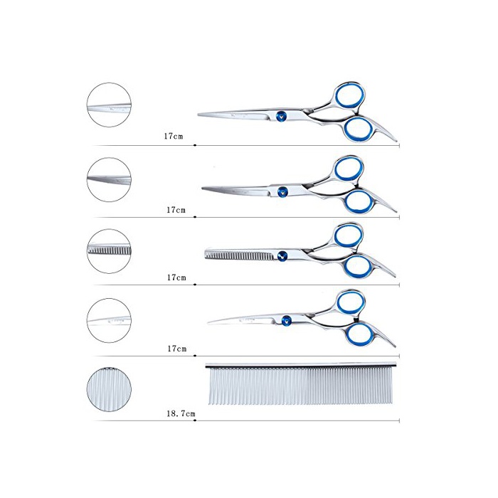 KEDSUM 애완동물용 트리밍시자 전신 미용 세닌구 컷 시자 애완동물용 가위 스테인레스 개와 고양이 내구성 7점 세트 전용 케이스 첨부 와