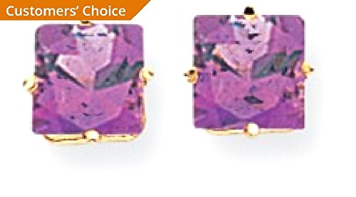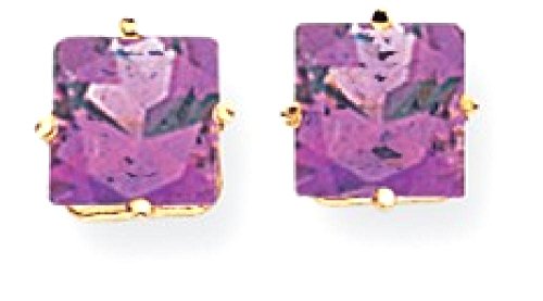 ICECARATS DESIGNER JEWELRY 14K YELLOW GOLD 6MM PRINCESS CUT PURPLE AMETHYST POST STUD BALL BUTTON STUD EARRINGS