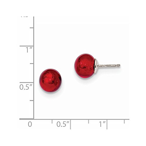 ICECARATS DESIGNER JEWELRY 925 STERLING SILVER RED ITALIAN MURANO POST STUD BALL BUTTON STUD EARRINGS