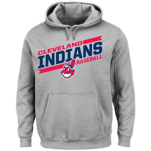 MLB Cleveland Indians Men's Back The Field Fleece Hooded Sweater, Steel Heather, Large