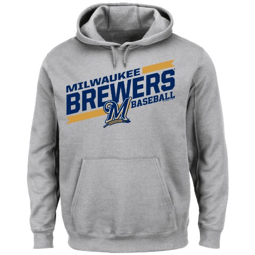 MLB Milwaukee Brewers Men's Back The Field Fleece Hooded Sweater, Steel Heather, X-Large