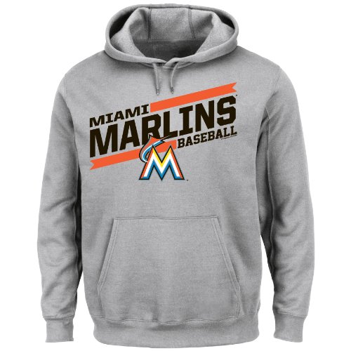 MLB Miami Marlins Men's Back The Field Fleece Hooded Sweater, Steel Heather, X-Large