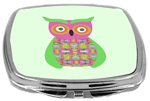 Rikki Knight Compact Mirror, Green Owl Patchwork