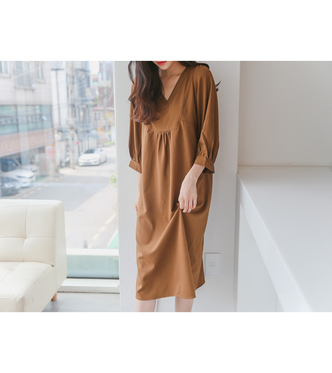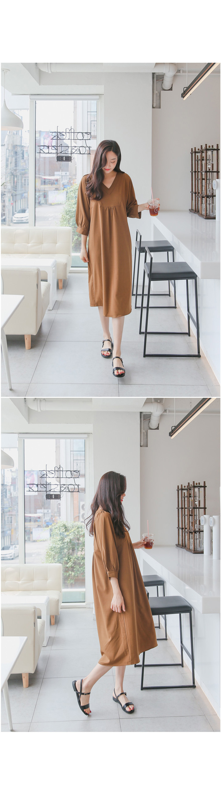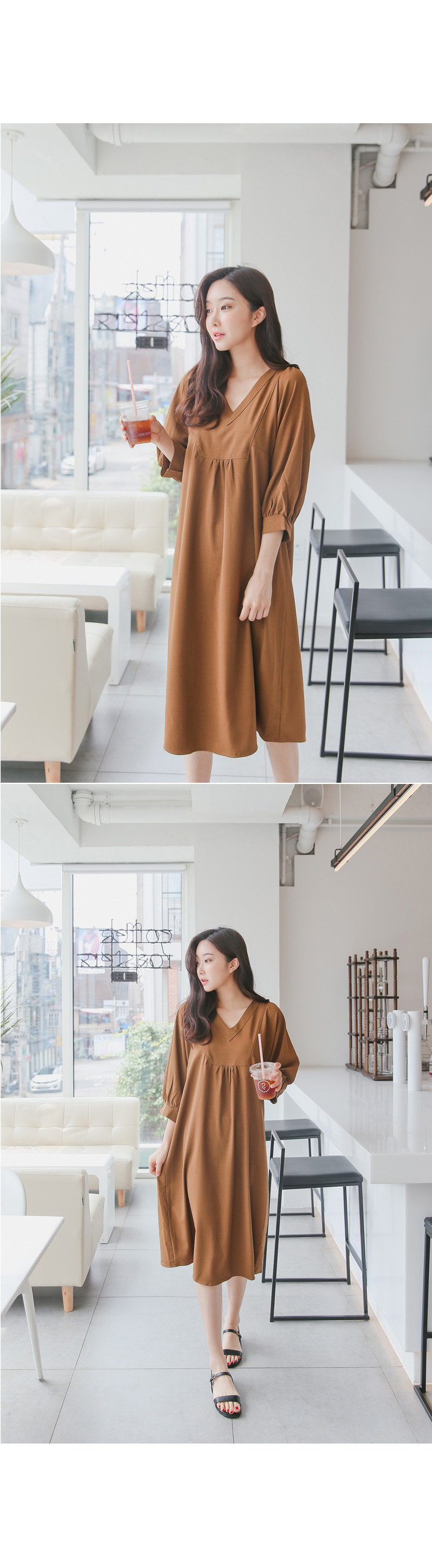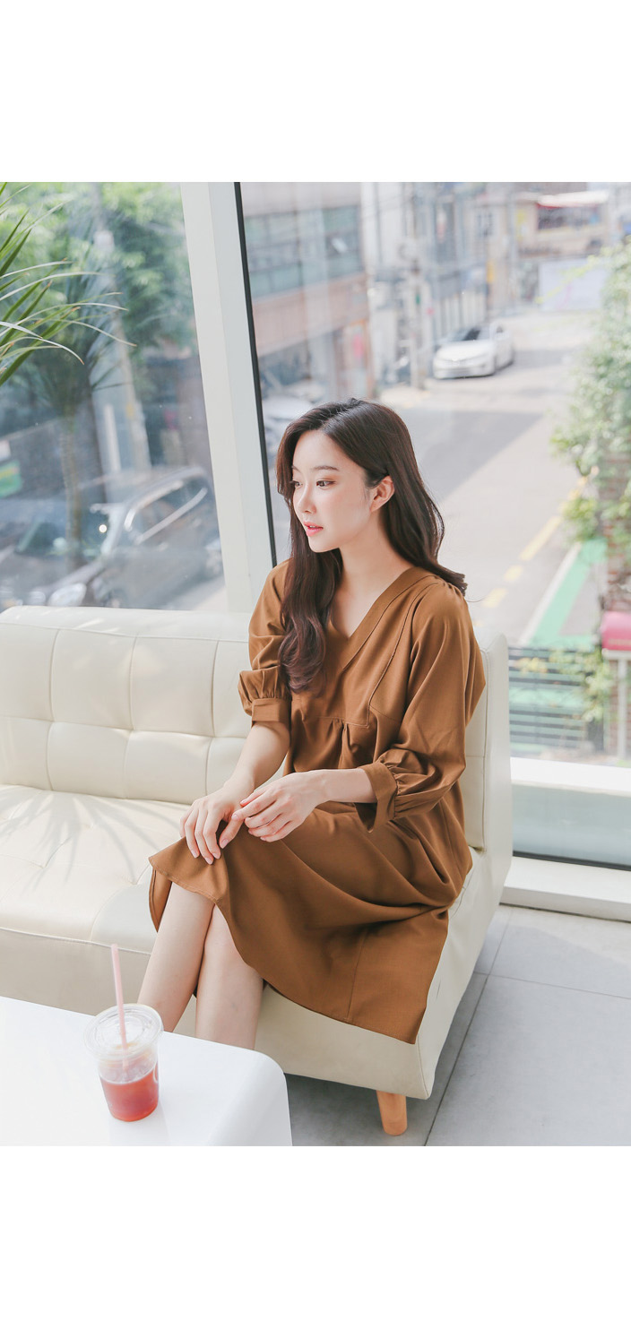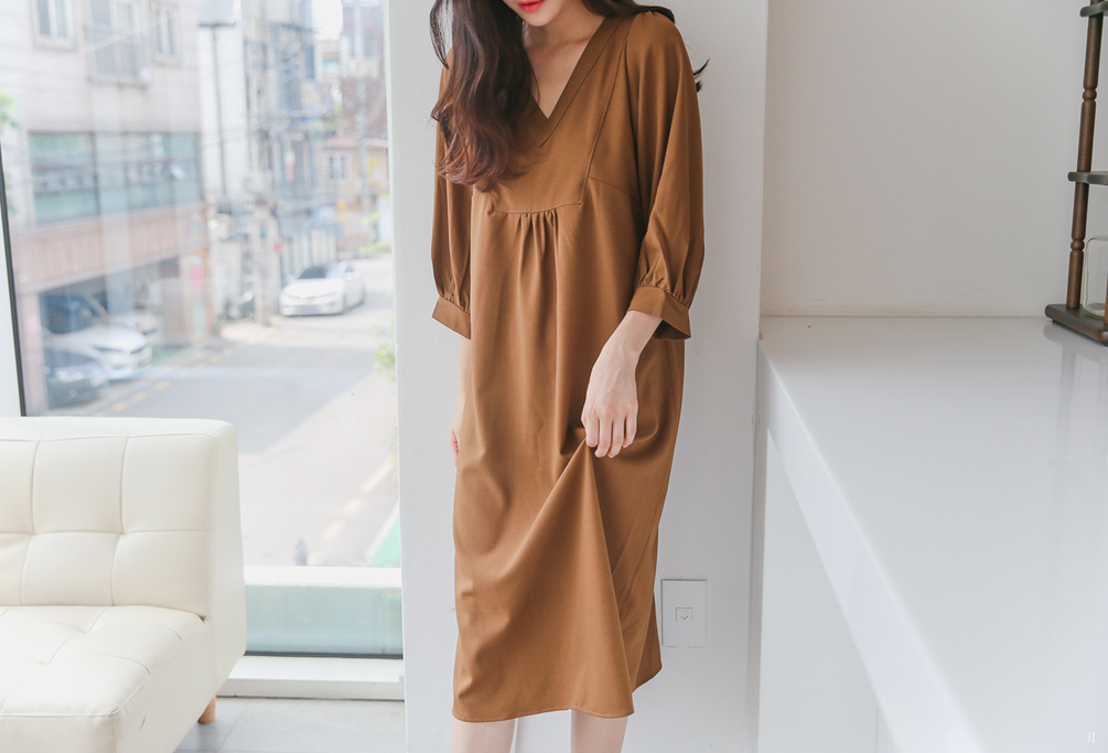 루즈한핏감의 V넥 롱원피스에요^^