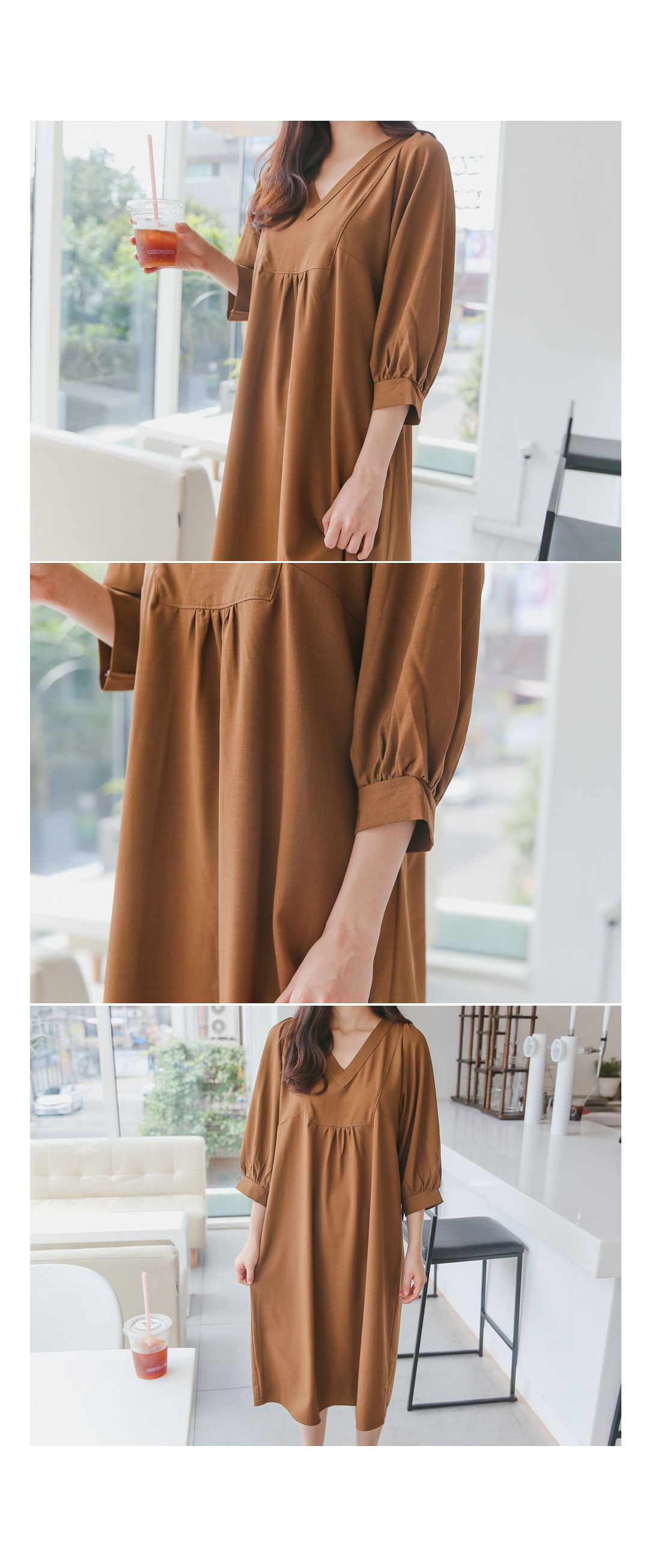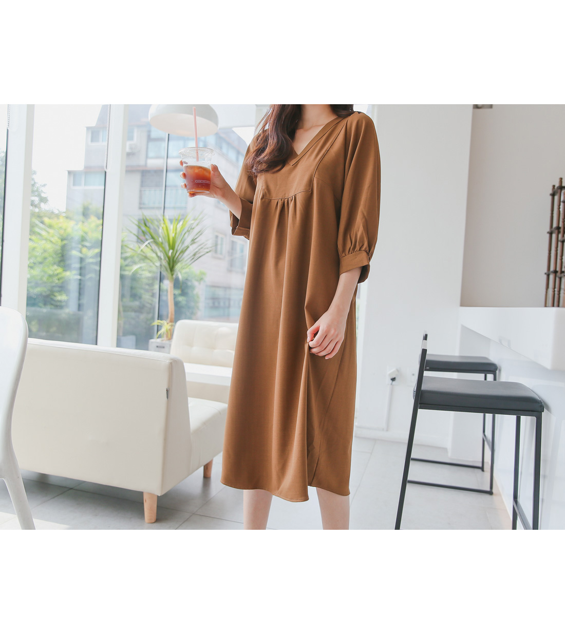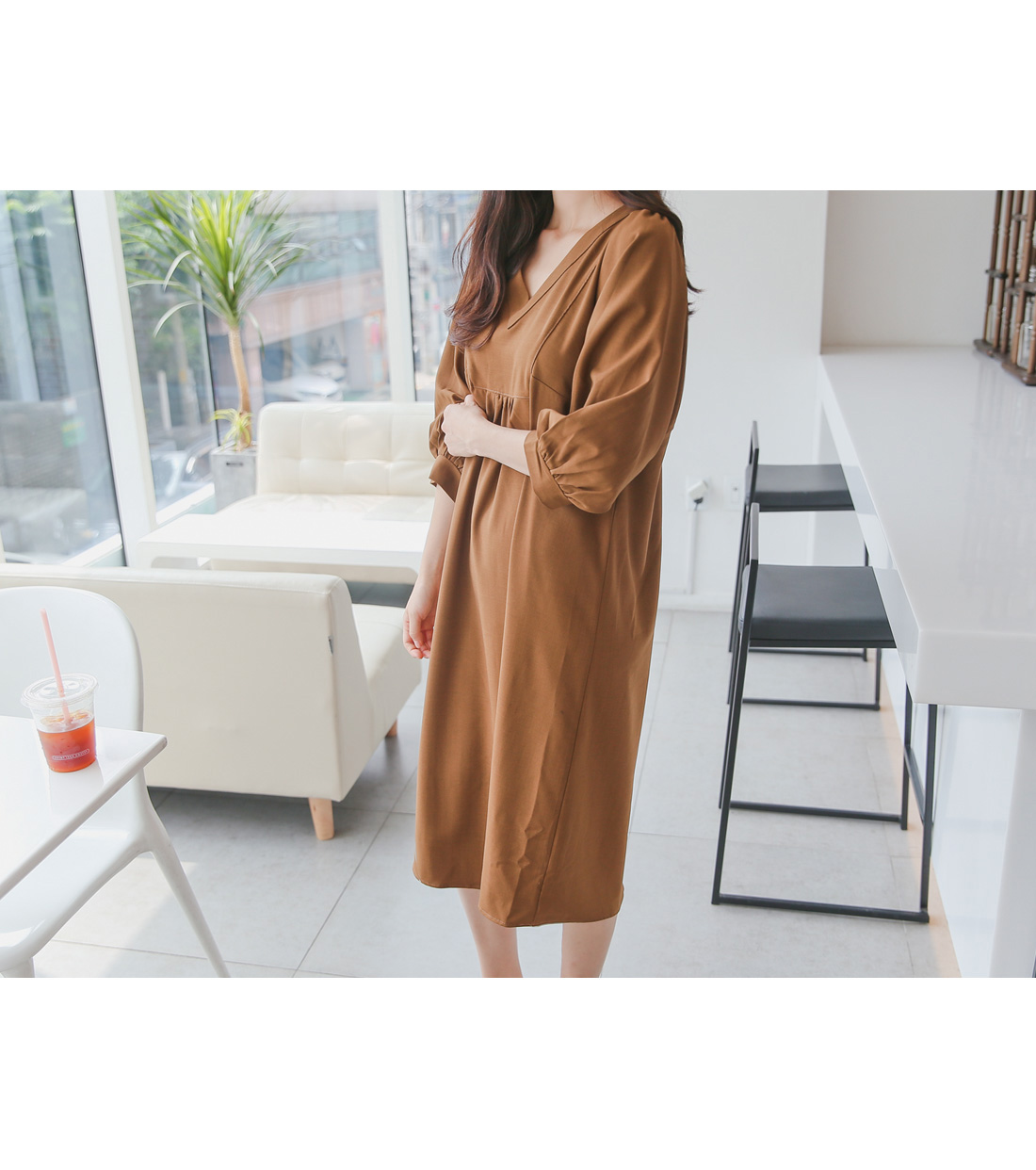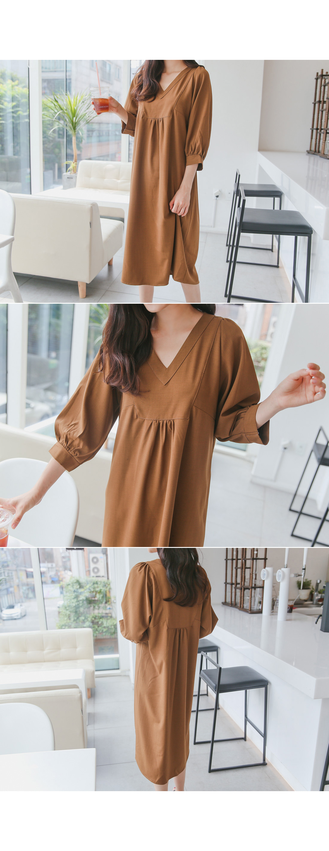 루즈한핏감의 V넥 롱원피스에요^^