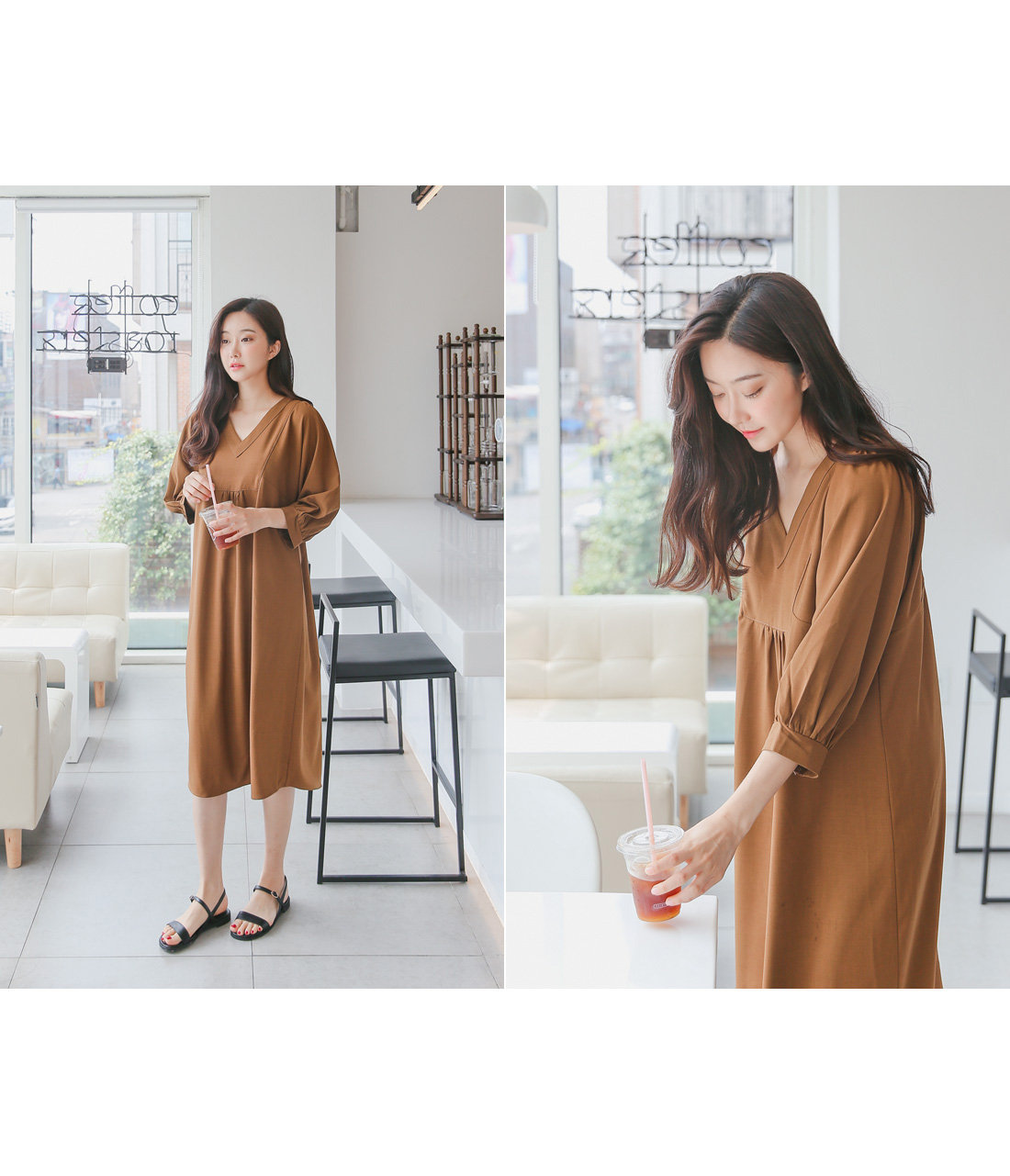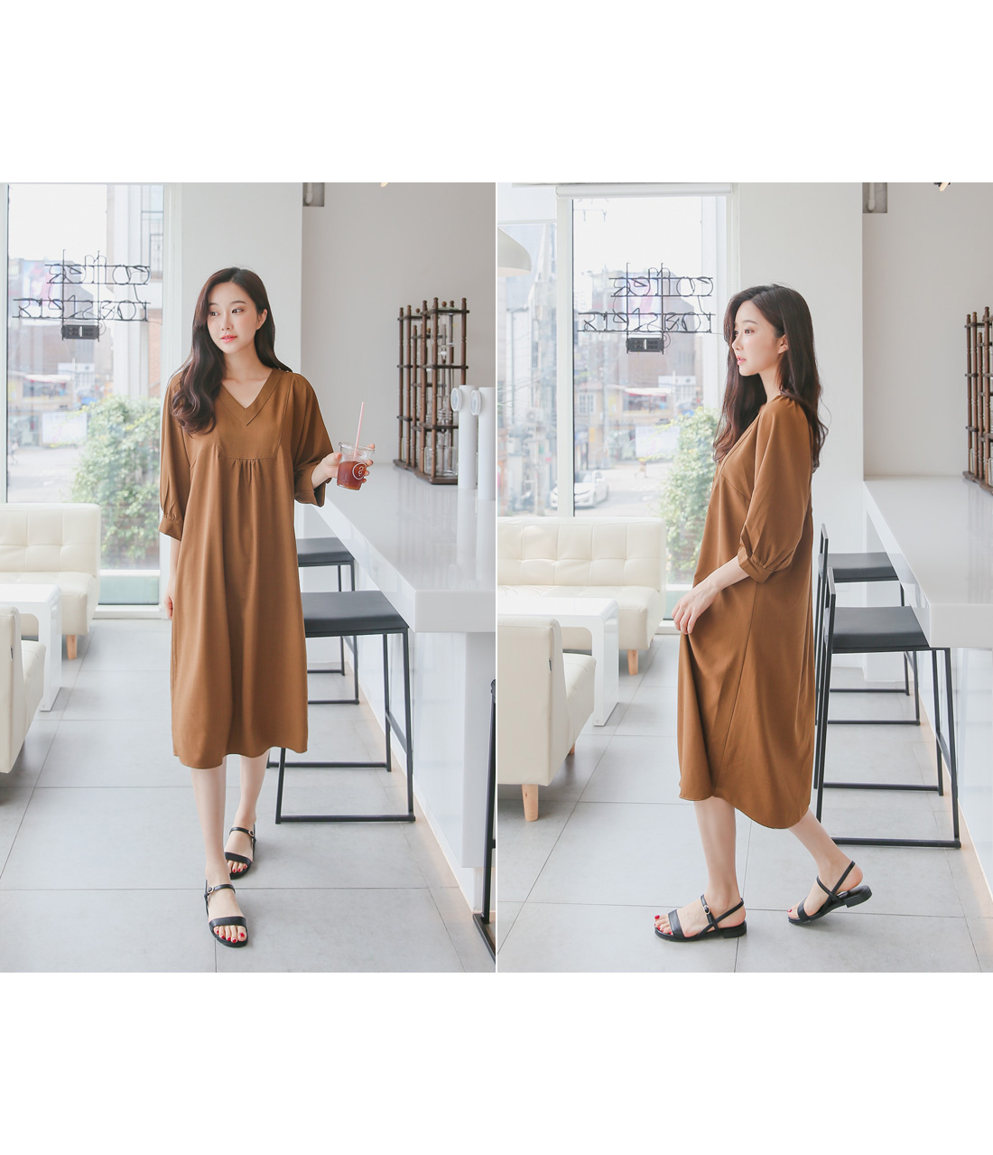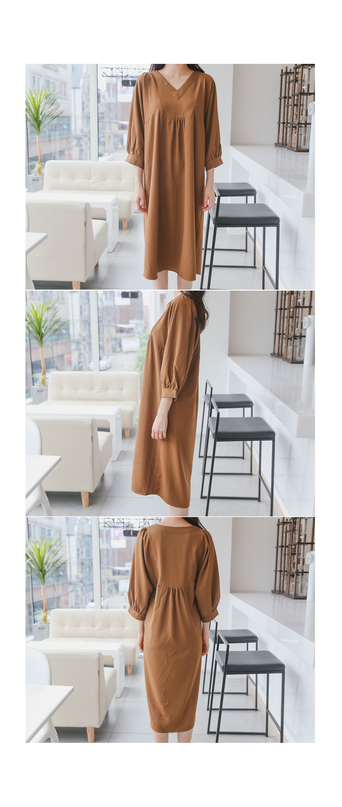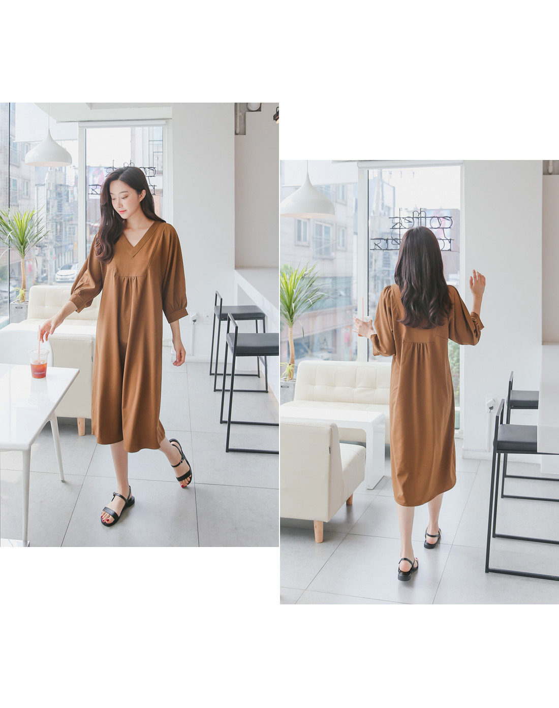 루즈한핏감의 V넥 롱원피스에요^^