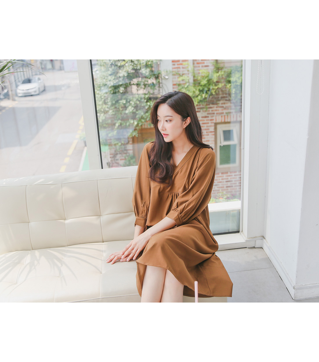 가슴밑으로 라인을 잡아 옷 맵시를 살려주었고