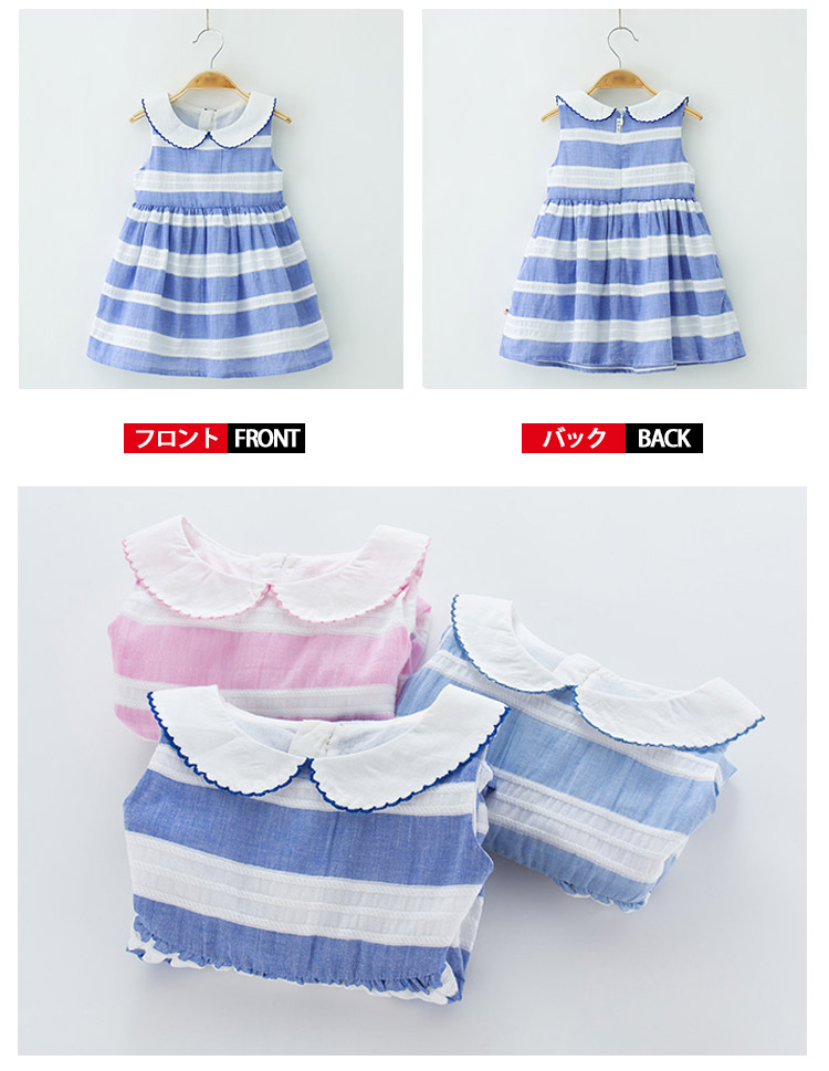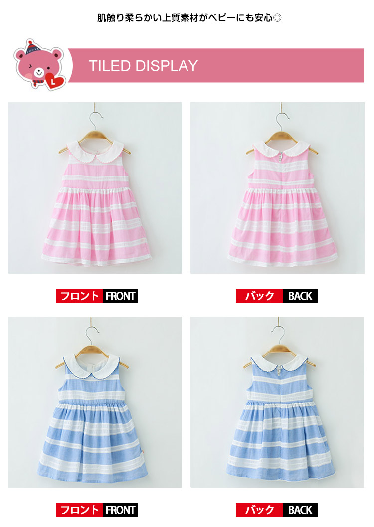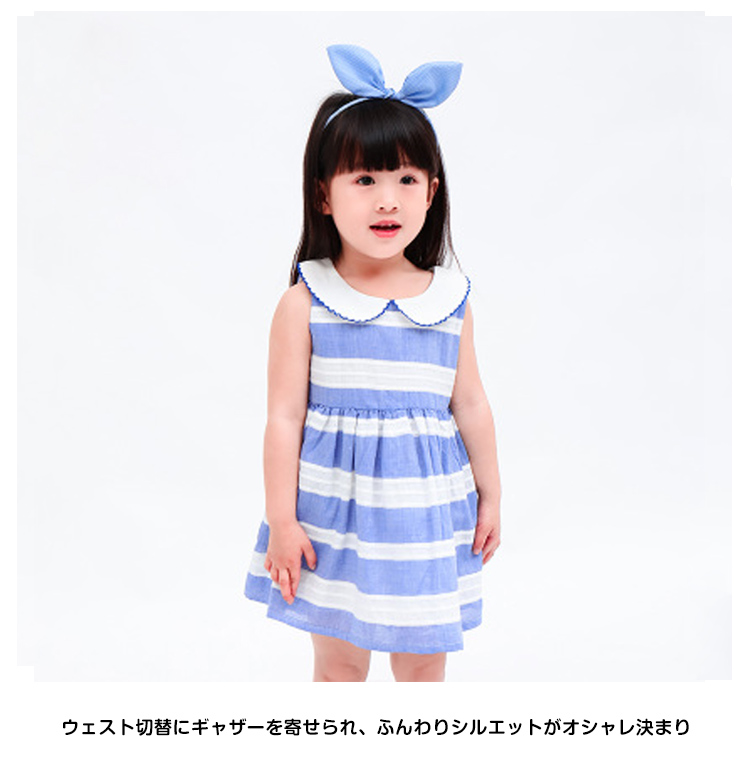 | 爽やかな色合いが可愛いワンピース清楚な太めボーダーがガーリーの可愛さをより一層引き立ててくれますウェスト切替にギャザーを寄せられ、ふんわりシルエットがオシャレ決まり肌触り柔らかい上質素材がベビーにも安心◎ | |