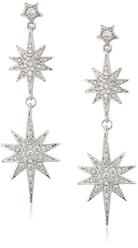 silver tone star double drops with pave crystal accents and crystal stone star accent at post