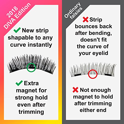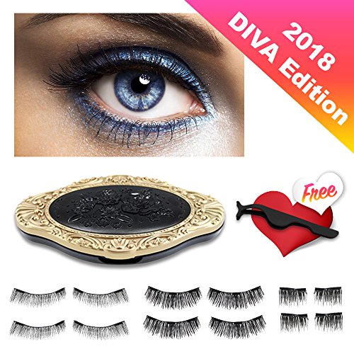 2018 DIVA EDITION - All in one 3 Styles 12 Pcs Premium Magnetic Eyelashes in Elegant Mirror Case plus Free Eyelash Applicator