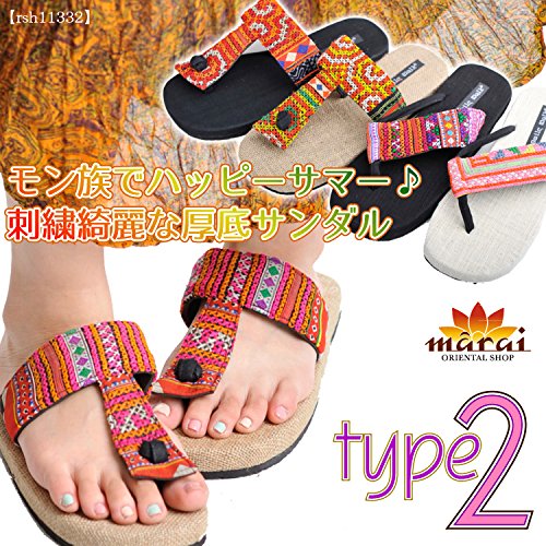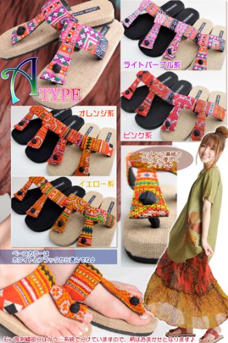 -. Title : エスニック&アジアン マーライ モン族 厚底サンダル 甲部分タイプAND刺繍カラー:Bタイプ ピンク系