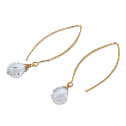 About this item: Crystal quartz sparkles with the promise of elegance in a sublime design by Khun Boom. She sets gems that total 9 carats inside swirls that fall from oval loops. The earrings are handcrafted of sterling silver and bathed in 24k gold. 24k gold-plated .925 Sterling silver earrings. Earrings measure 2" by 0.4".