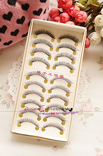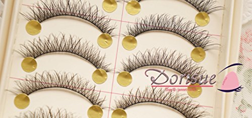 Dorisue False Eyelashes (10 Pairs Set) Daily Use Super Natural Cross Lashes Black Cotton Line Family Roots natural nude look R4