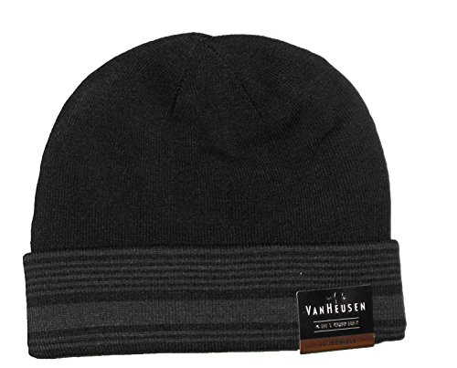 Product Description Van Heusen reversible knit beanie 4 in 1 cuff hat for men. Color Black. Striped on bottom. Style HVH53K46. One size fits all. 95% Acrylic, 5% Others. Hand Wash. Imported 0