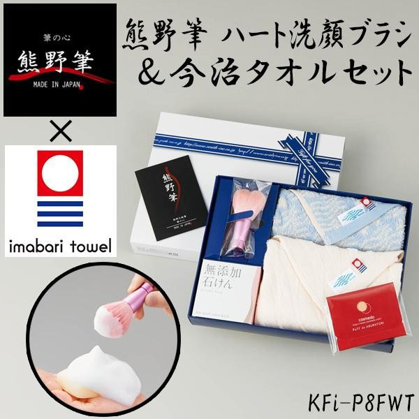 | セット内容 | 熊野筆ハート洗顔ブラシ、今治フェイスタオル、今治ウォッシュタオル、無添加石けん、パフdeあぶらとり紙(60枚入) |