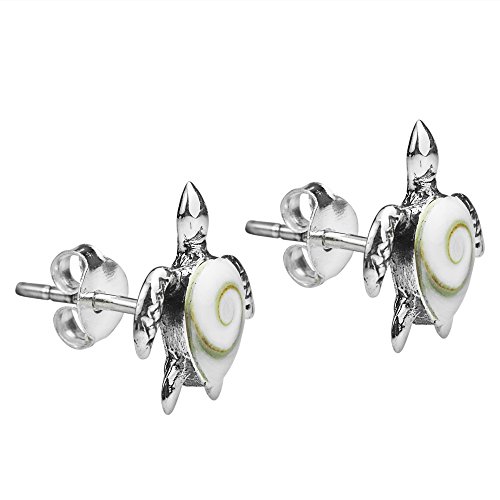 Artisan Tuey from Thailand handcrafted these trendy sea turtle swirl shiva shell .925 sterling silver post earrings.The earrings feature petite sea turtles with shivs shell inlay. In many cultures, the sea turtle symbolizes creation, endurance, and good fortune. Add this accessory to your outfit and you'll never feel far from the ocean. PLEASE NOTE: The handcrafted nature of this product will produce minor differences in design, sizing and weight. Variations will occur from piece to piece, measurements may vary slightly.AERAVIDA works directly with gifted and talented Artisans from all over the world. At the core of our philosophy is fair trade and fostering a sustainable future for our Artisans.
